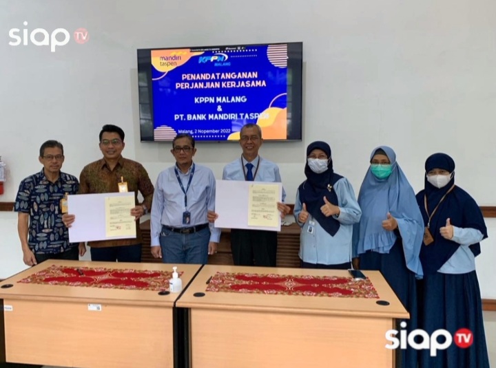 MALANG ( siaptv.com ) – Dalam rangka memudahkan Satker mitra kerja dalam pengurusan ketaspenan, KPPN Malang menggandeng Bank Mandiri Taspen Cabang Malang, menggelar kegiatan penandatangan kerjasama Layanan Bersama (Co Location) Ketaspenan bertempat di ruang VIP Gedung Cagar Budaya KPPN Malang dengan tetap mematuhi protokol kesehatan, pada Rabu (2/11/2022).